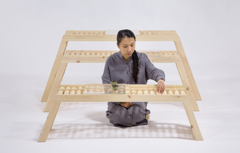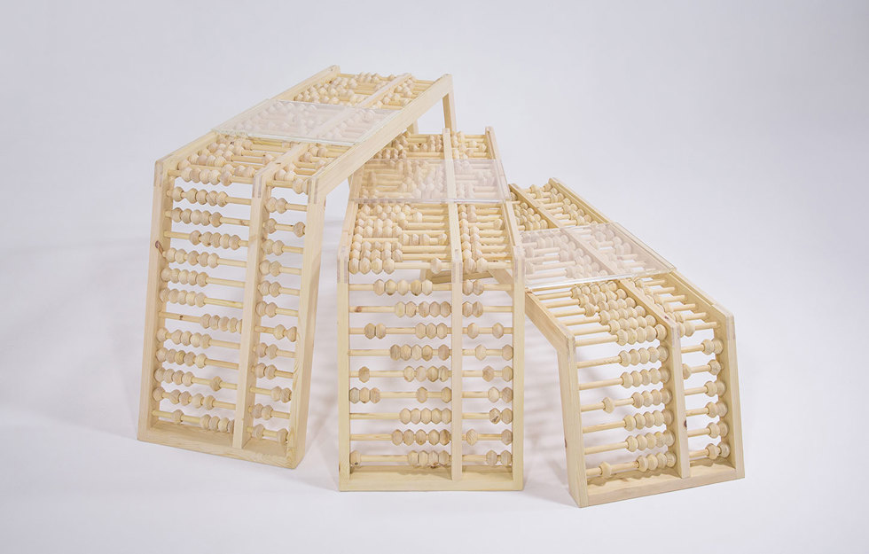 إن العداد هو جهاز الحساب الصيني التقليدي للأطفال في المرحلة الابتدائية. بدأ تشو شياوجيه من العداد و صمم مجموعة من الأثاث مع نفس الهيكل وبمختلف الأحجام. ويمكن استخدام المجموعة كالعداد للأطفال، ويمكن أيضاً استخدامها كمقاعد، وكطاولات للشاي أو مكاتب. فهي وظيفية وتعليمية. ويود تشو شياو جى تشجيع المزيد من الاطفال على التفكير بشكل مستقل بيدهم.