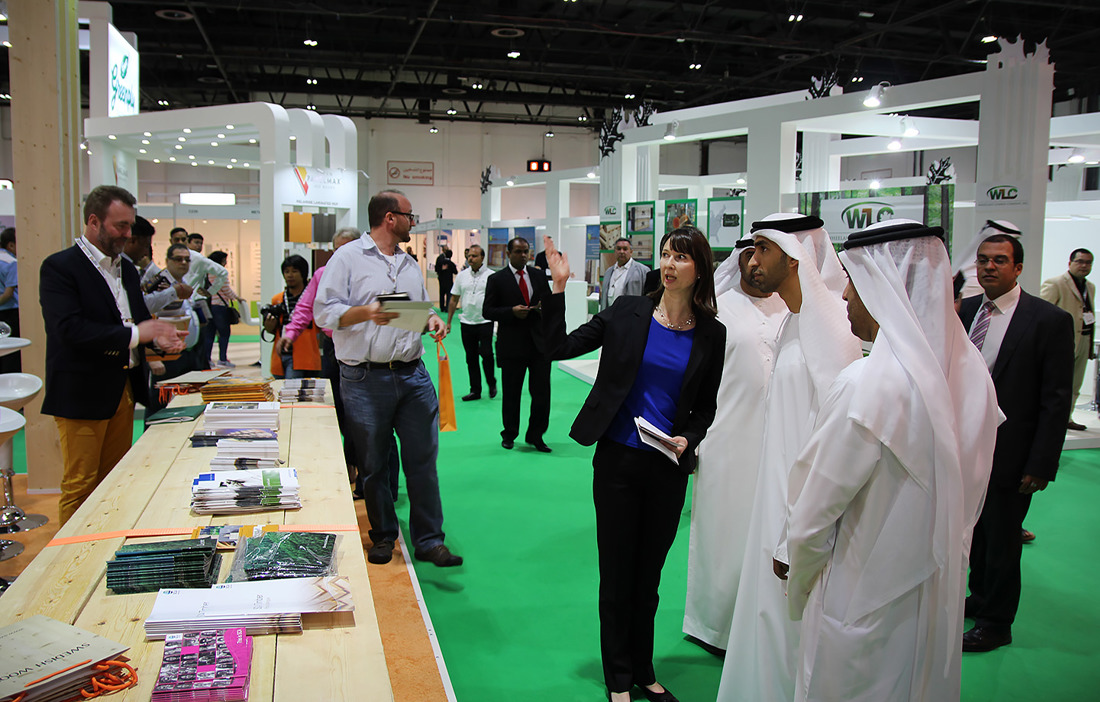 وكانت معظم شركات معامل النشر السويدية التي تصدر إلى المنطقة ممثلة في منطقة العرض الخاصة بـ Svenskt Trä في معرض دبي للأخشاب (Dubai Wood Show). واستضافت منصة العرض الخاصة بـ Svenskt Trä نقاشا حول الجودة والمحتوى الرطوبي وأبعاد الخشب السويدي المنشور، وحول الغابات السويدية المستدامة.