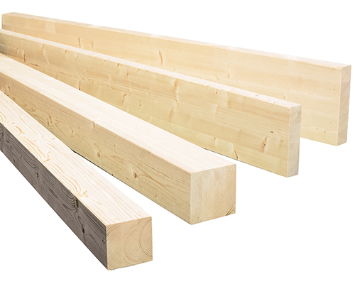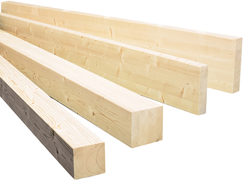 - رقائق الخشب (العارضات والألواح) يتم تكويمها ولصقها ببعضها البعض لتكوين عناصر بنائية كبيرة. إن الحجم والطول تكون محدود بسبب خيارات النقل.