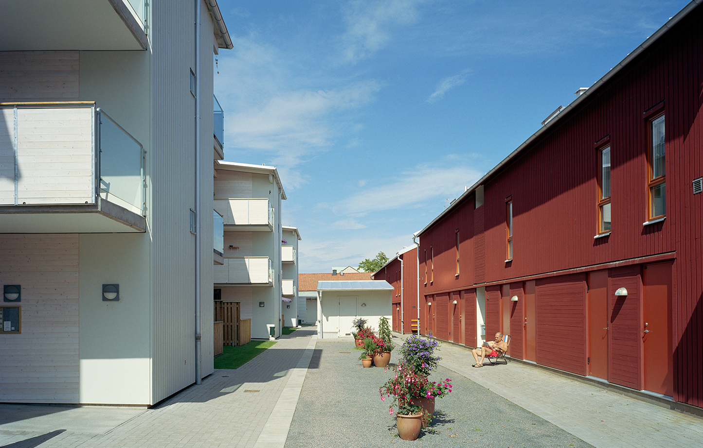 يقع هذا المبنى ذو اللون الأحمر المطفي في قلب المنطقة المركزية في ليدشوبينغ. فهذه الكتلة السكنية، حيث الشقق في الطابق العلوي تبرز فوق المرآب الموجود في الطابق السفلي، وهي ذات شكل حديث وفريد من نوعه، وفي الوقت نفسه ذات طابع مماثل للمباني القديمة في المدينة. ومع أخذ مرجعيته من تقاليد المزارع، فإن المبنى مقسوم ، حيث أن الجزء "الوظيفي" منه في الطابق الأرضي، إلا أن الطابق العلوي السكني فيه ذو نمط مختلف. فالسمات المعمارية محدودة، وتم تنفيذها بمهارة وتحريرها من عناصر المقتطفات.