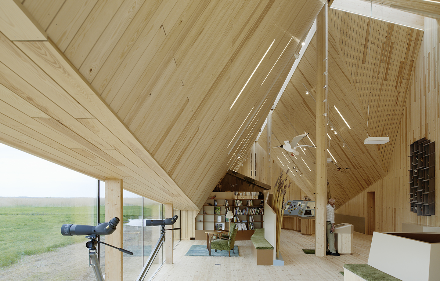 تم تصميم مبنى مركز الزيارة والمعلومات Naturum Tåkern بأخشاب تم قطعها وتثبيتها لتشكل طيات خشبية ذات حواف حادة. يوجد داخله غرفة كبيرة تطل على الطيور الموجودة في البحيرة والسماء. وتمثل طيات المبنى حركات الطبيعة. تم تصميم التصميم وفقًا لحساب دقيق لفتحات النوافذ المتطلبة. تم ترشيح مبنى مركز الزيارة والمعلومات Naturum Tåkern لجائزة Träpriset عام 2016.