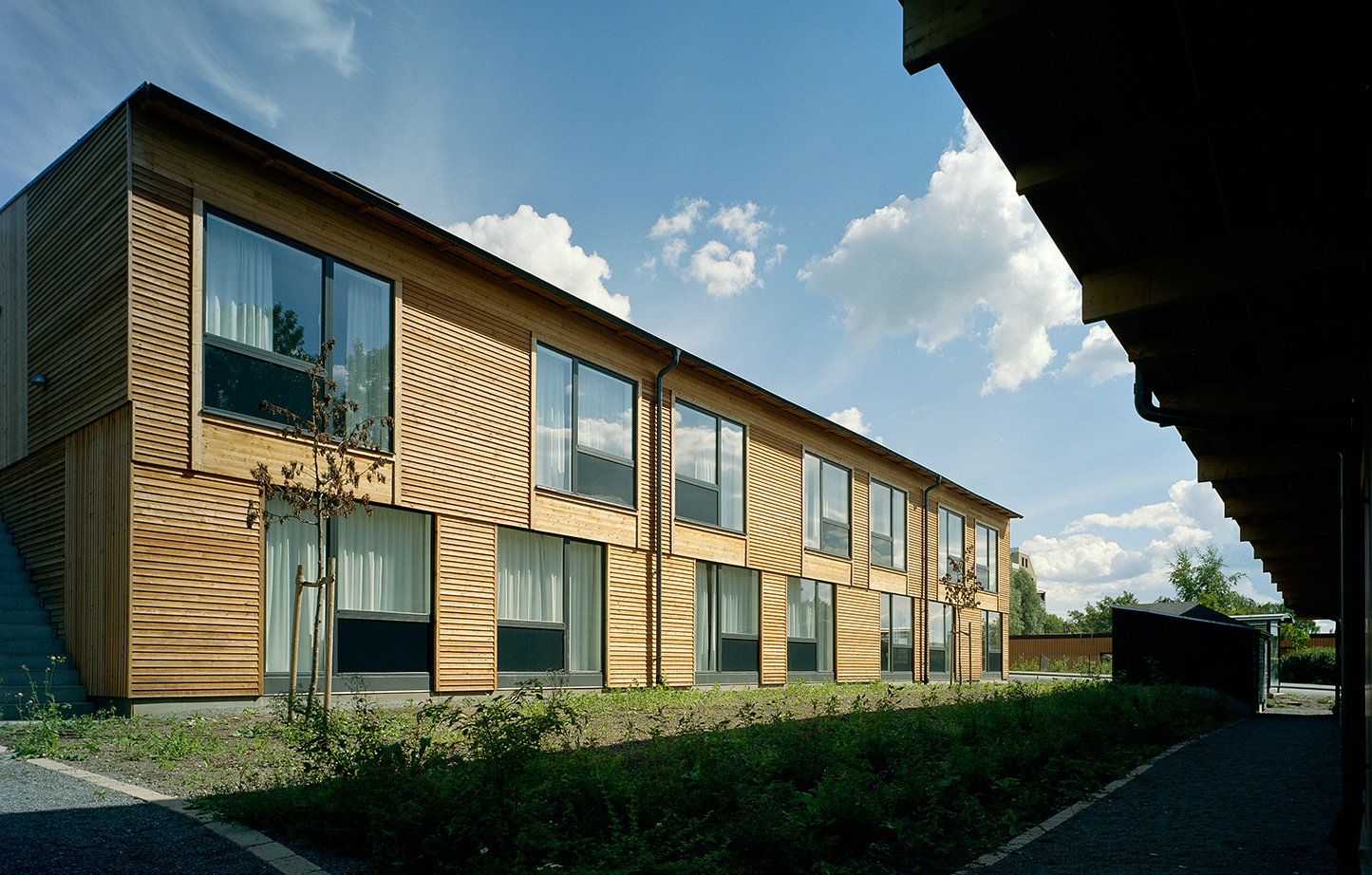 تم بناء تلك الكتلتين من المساكن الطلابية بكفاءة باستخدام الوحدات الحجمية والإطار الصلب، وتم التشطيب باستخدام كسوة خشبية أنيقة يصعب ملاحظتها. فالواجهات الرائعة المبنية بشكل جميل في الموقع باستخدام خشب اللاركس (خشب الأرز) تعكس التصميمات الدولية. كما أن شرفاته الخلابة المتناغمة مع اللون الأحمر تضفي شكلاً يتسم بالدفء. فالمباني مماثلة للمباني الموجودة في المدن، وتوضح أن الاهتمام بشكل الواجهات يمكن أن يحول المباني الغير مكسوة إلى جوهرة معمارية.