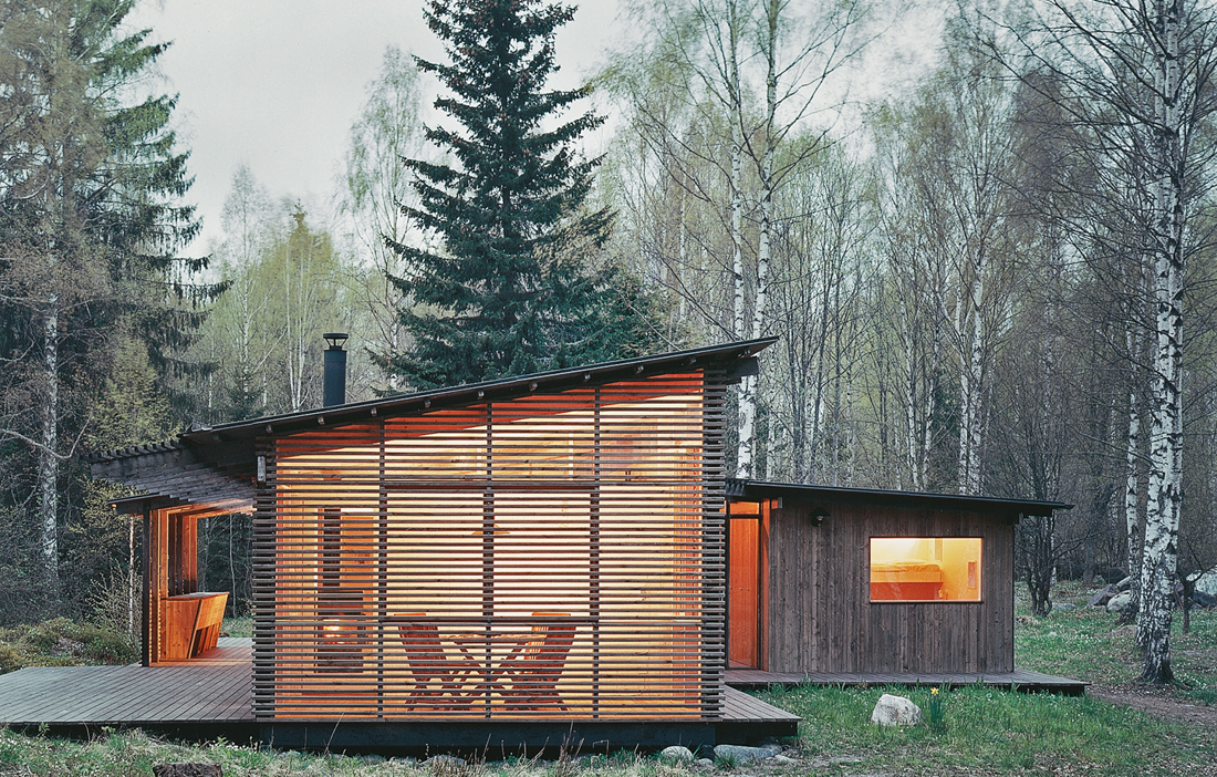 هذا الكوخ الصيفي الحديث، مع هندسته المعمارية المدروسة بعناية، يقدم مجموعة كاملة من تفاصيل بارعة ومتعاطفة. لأولئك الذين يرغبون في العيش مع الجمع بين الداخل والخارج، وهناك غرفة بها شرفة ومساحة إضافية للعمل الإضافية تحت الكنرات الممتدة. إن الشكل الرسمي إلى حد ما للتصميم يسمح باستخدام المنزل على مدار العام. وكما يقوم الشتاء والربيع بإفساح الطريق إلى الصيف، فإنه يتم فتح الغرف والأبواب بسهولة كما يقوم الشخص بخلع ثيابه. وبالتالي فإن هندسة البناء المعمارية تتبع تغير المواسم، وفقا للأنماط التقليدية، في الوقت الذي توفر فيه أيضا الراحة المتوقعة والراحة للحياة الحديثة.