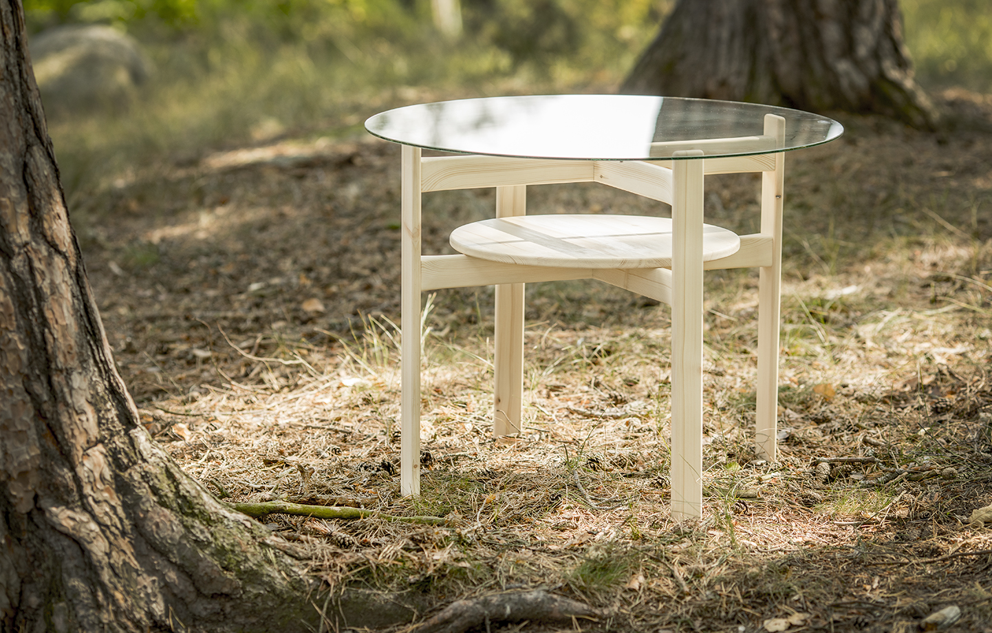 تظهر أرجل الطاولة الرفيعة عبر السطح الزجاجي للطاولة، فالأرجل الخشبية تُعطي انطباعاً بالغابات السويدية، وسطح الطاولة الزجاجي يُشعرك بالطابع الاسكندنافي البحت.